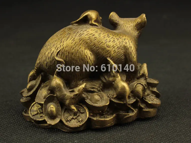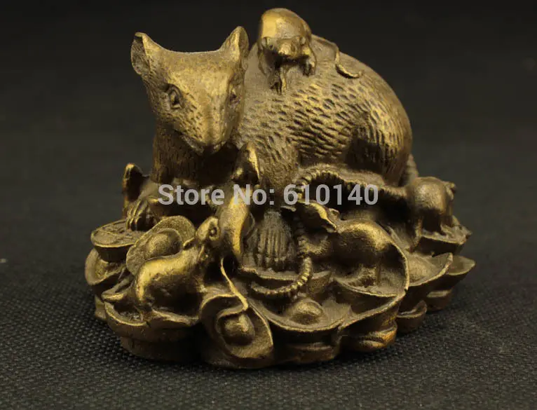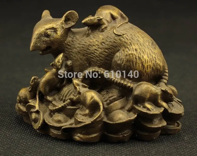 TOP RARE OLD CHINESE COPPER BRASS MOUSE RAT FAMILY LUCKY Statue
