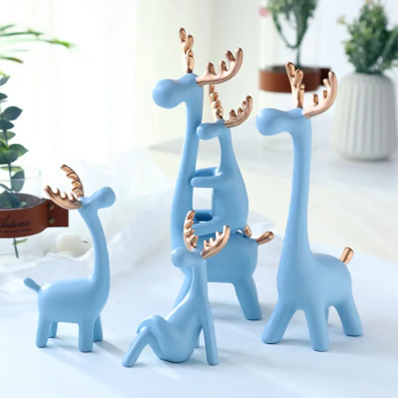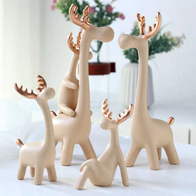 European Style Reindeer Family Resin Statue Creative Wine Cabinet Living Room Ornaments Decoration