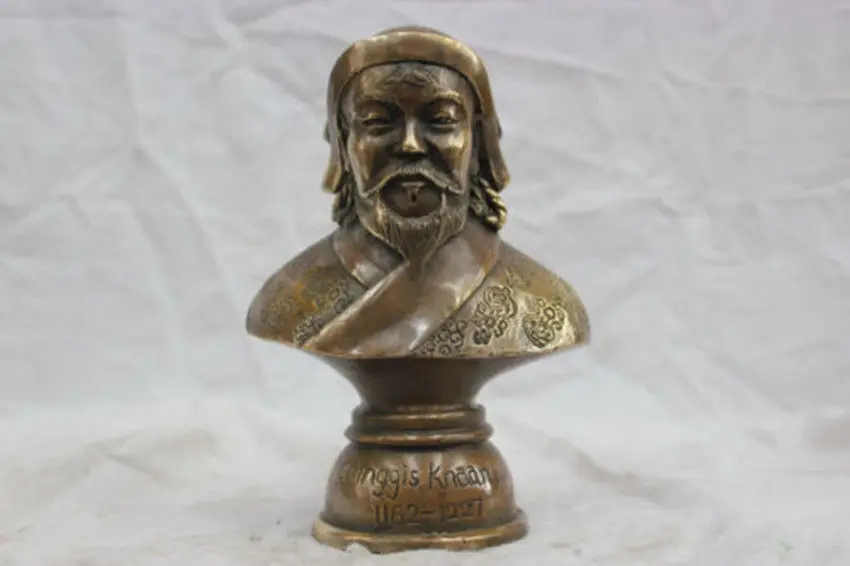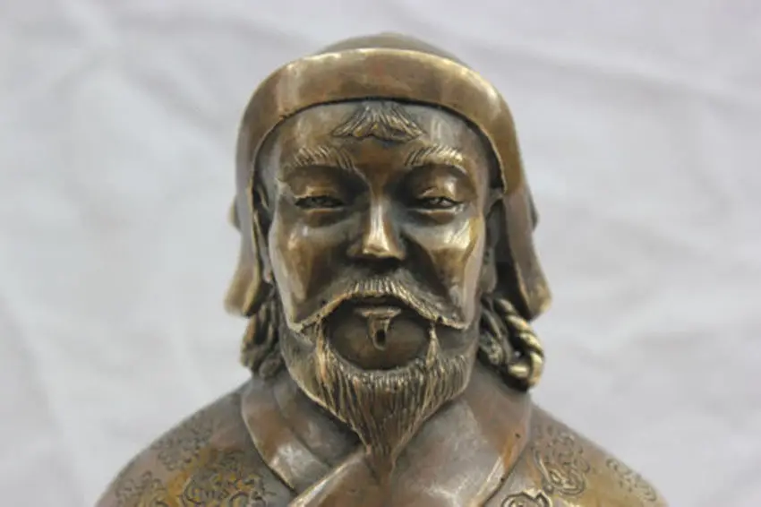 HOT SALE TNUKK China Pure Bronze Genghis Khan Bust Statue vintage family decoration metal handicraft