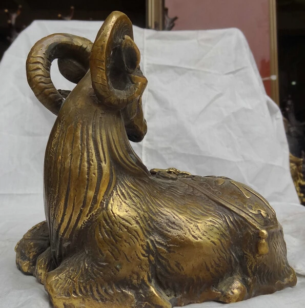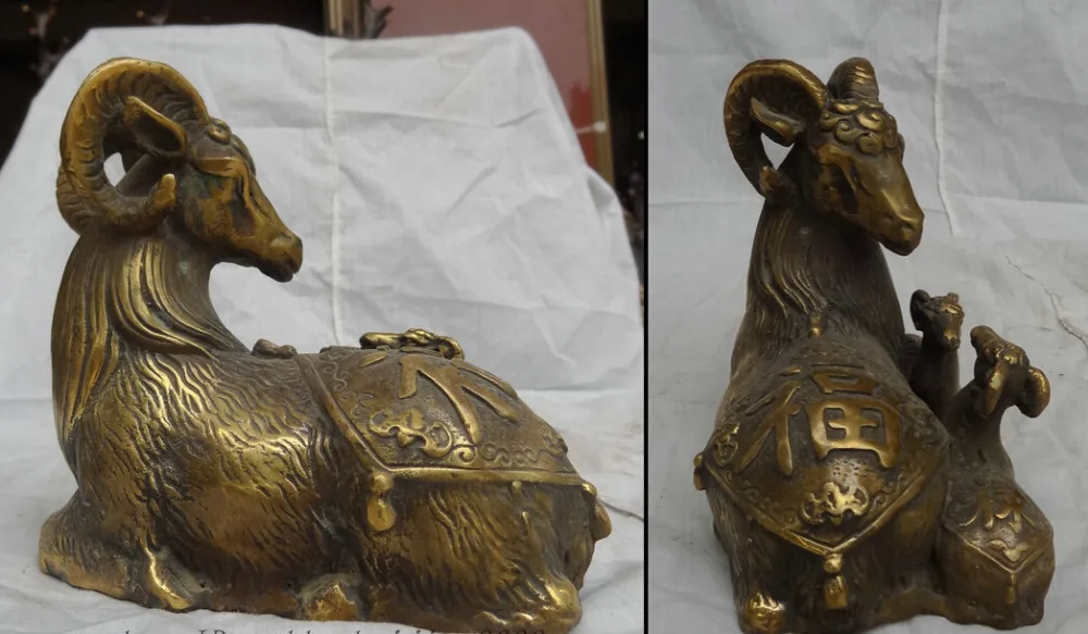 BEST QUALITY xd 001526 8" Chinese Bronze Year Zodiac Wealth Lying Fu Sheep Goat Family Statue Animals